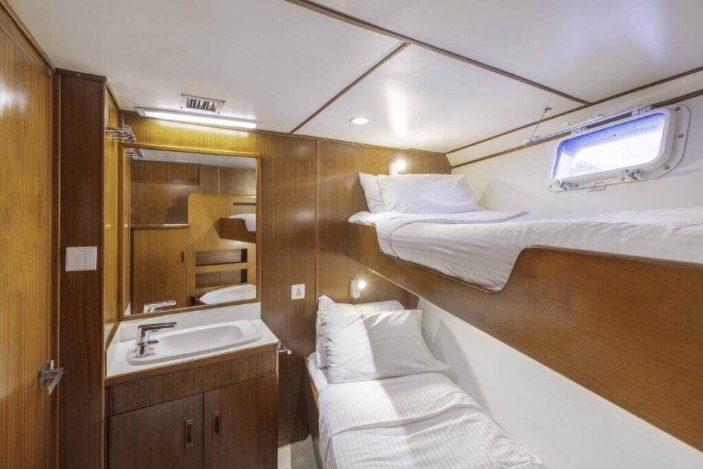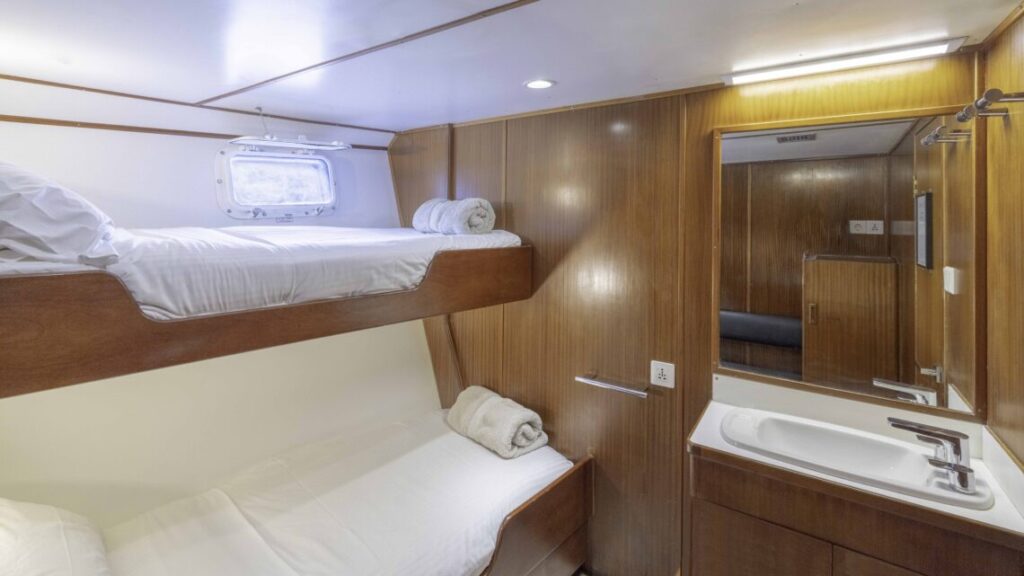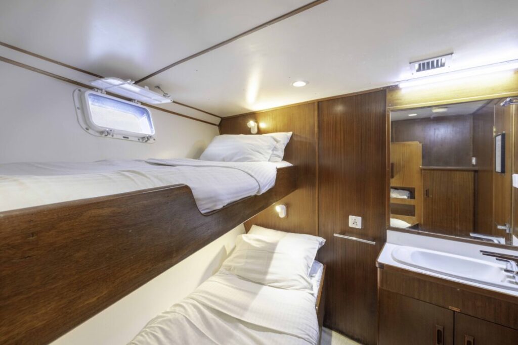 Accommodation - Maindeck 2 x Queen Bed Cabins with ensuite 3 x 2 man bunk cabins 2 x Shared Bathroom w/ shower